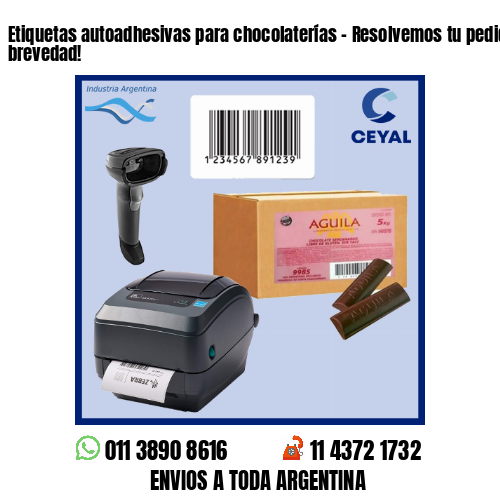 LLEGAMOS A TODA LA ARGENTINA CON TU PEDIDOS Te asesoramos en el momento en nuestro Whatsapp: 11-3890-8616 ! Personalizamos tu rollos de etiquetas! si te dedicás a la distribución en chocolaterías podemos imprimir etiquetas adhesivas con la mejor calidad para tu transporte. Nos encargamos de que estén acorde a tus necesidades....
