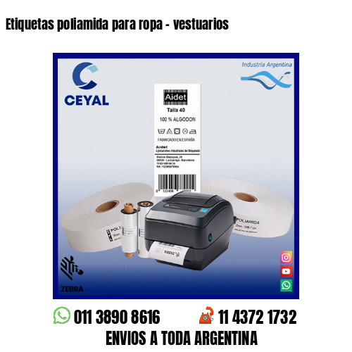 LÍDERES EN ETIQUETAS PARA LA INDUSTRIA TEXTIL! El mejor etiquetado para tu indumentaria lo imprimís en Ceyal. Etiquetas personalizadas. Poliamida para coser en tu ropa. Amplia variedad de tamaños. Tenemos stock permanente. ¿No sabés qué cantidad de ropa vas a tener que etiquetar? No hagas de más. Enviamos a todo...