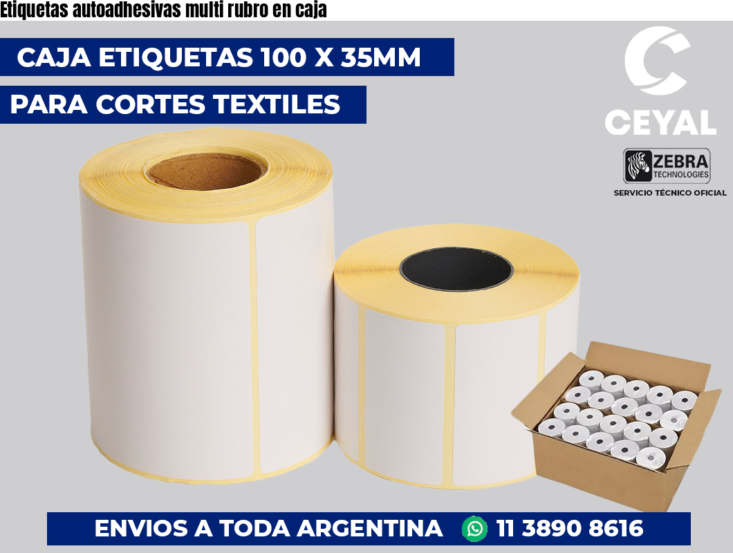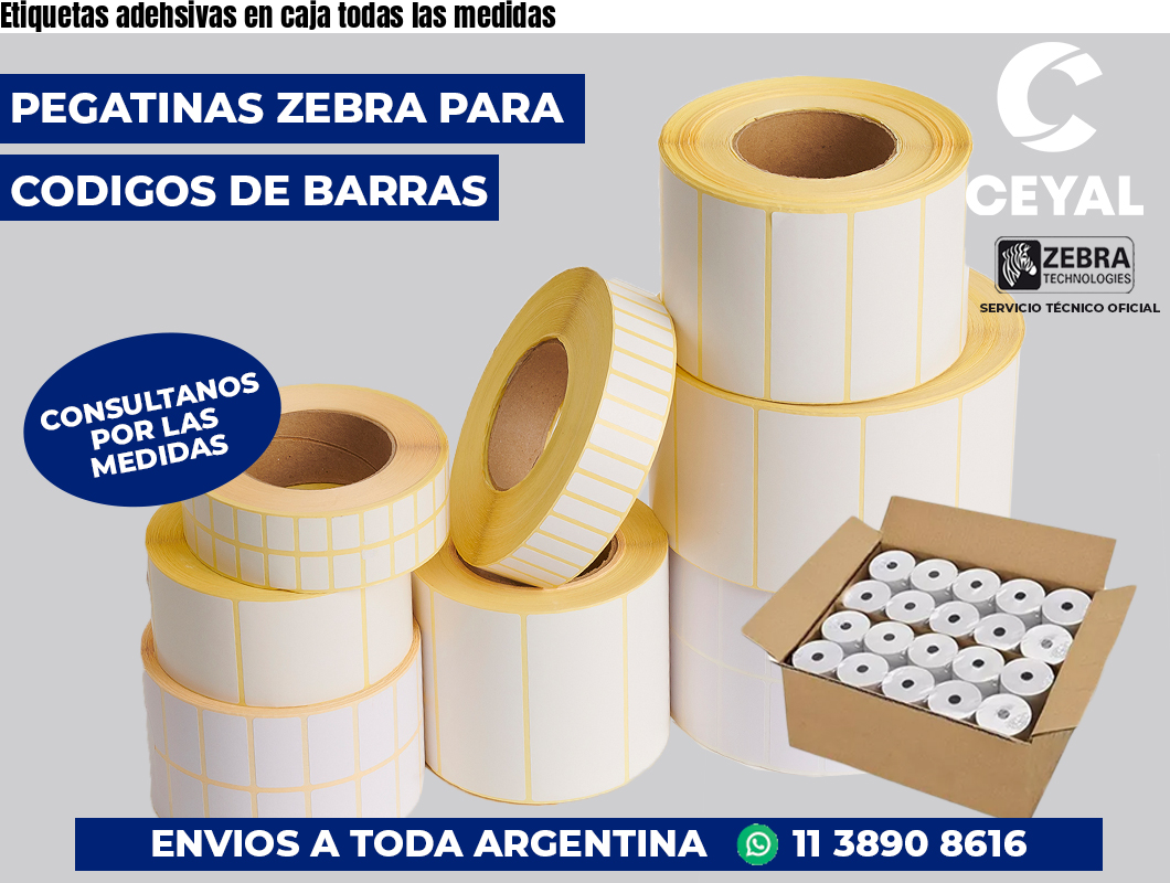 ROLLOS DE ETIQUETAS EN CAJA TODOS LOS RUBROS! • Cajas con etiquetas adhesivas • Tenemos la medida que necesites para todas las industrias • Despachamos hacia toda la Argentina • Blancas o con tu logo, códigos de barra, etc ALGUNAS MEDIDAS QUE TENEMOS PARA OFRECERTE: Consultanos también por bandas dobles...